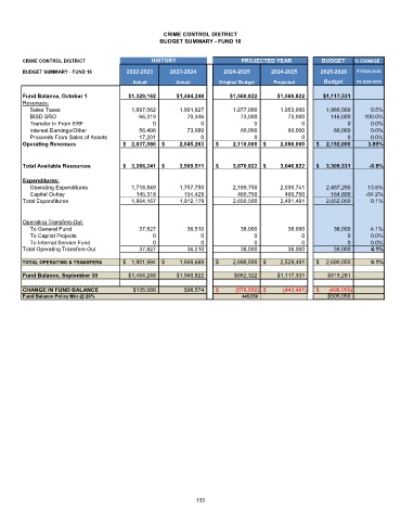 CRIME CONTROL DISTRICT HISTORY PROJECTED YEAR BUDGET % CHANGE