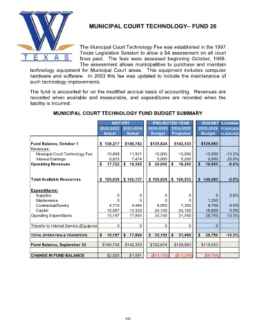 MUNICIPAL COURT TECHNOLOGY– FUND 26