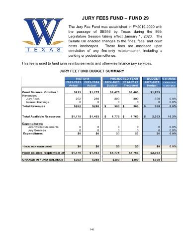 This fee is used to fund juror reimbursements and otherwise finance jury services.