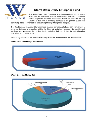 The Storm Drain Utility Enterprise is a proprietary fund. Its purpose is