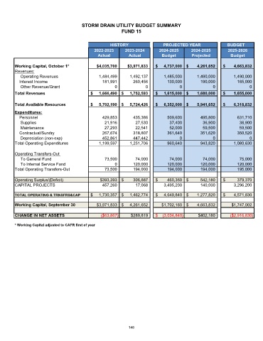 STORM DRAIN UTILITY BUDGET SUMMARY