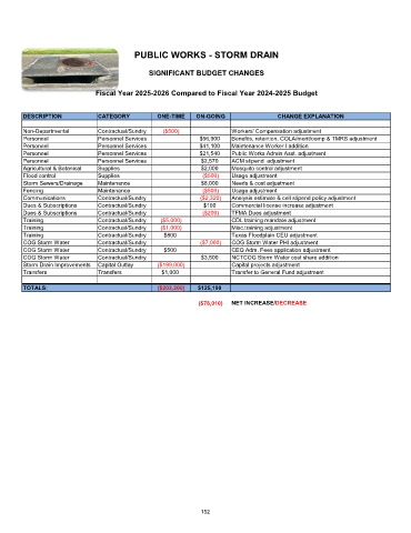 Storm Drain Improvements Capital Outlay ($199,000) Capital projects adjustment