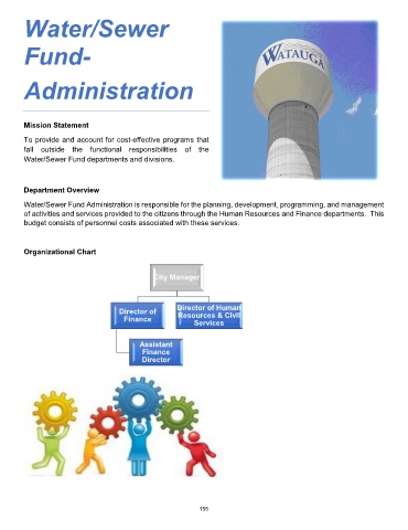 Water/Sewer Fund Administration is responsible for the planning, development, programming, and management