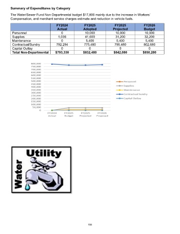 The Water/Sewer Fund Non-Departmental budget $17,800 mainly due to the increase in Workers’