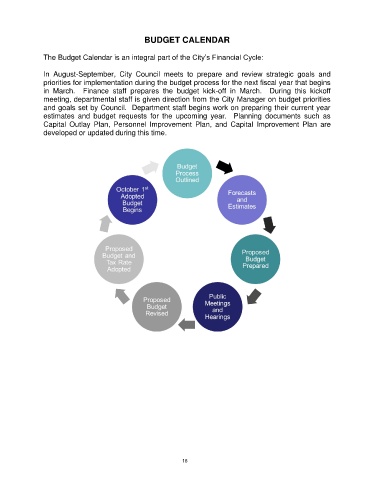 The Budget Calendar is an integral part of the City’s Financial Cycle: