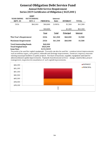 Proceeds to be used for capital equipment. Proceeds can also be used for: construct street improvements