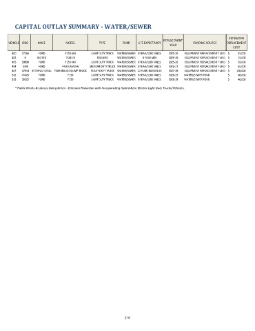 CAPITAL OUTLAY SUMMARY ‐ WATER/SEWER