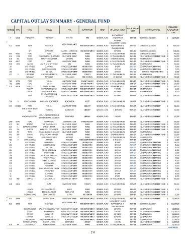 CAPITAL OUTLAY SUMMARY ‐ GENERAL FUND