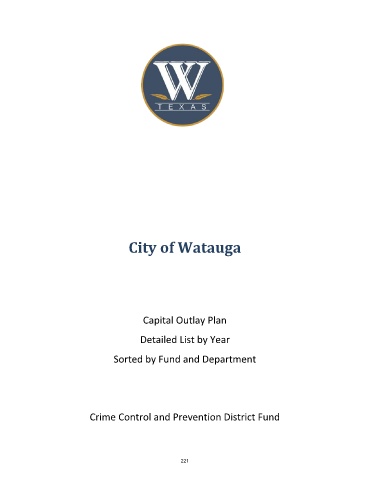 City of Watauga Capital Outlay Plan Detailed List by Year Sorted by Fund and Department Crime Control and Prevention District Fund 221