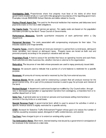 Page 239 - CITY OF WATAUGA, TEXAS ANNUAL BUDGET PORTRAIT