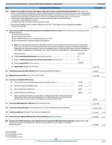 D42. Disaster Line 42 (D42): Current year voter-approval M&O rate for taxing unit affected by disaster declaration. If the taxing unit is