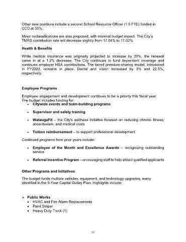 Page 31 - CITY OF WATAUGA, TEXAS ANNUAL BUDGET PORTRAIT