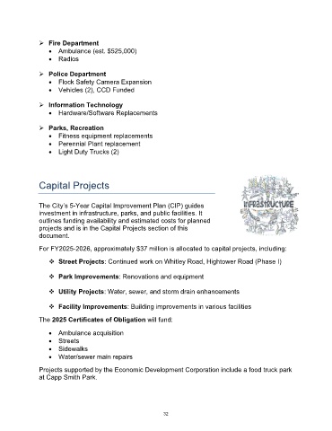The 2025 Certificates of Obligation will fund: