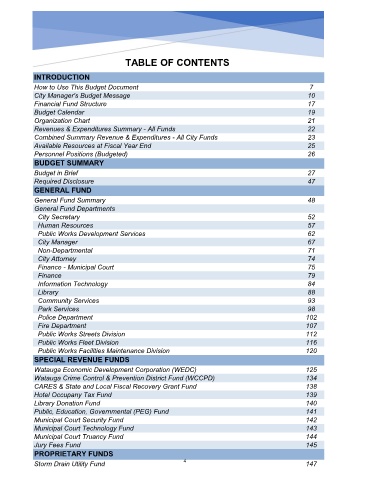 Page 4 - CITY OF WATAUGA, TEXAS ANNUAL BUDGET PORTRAIT