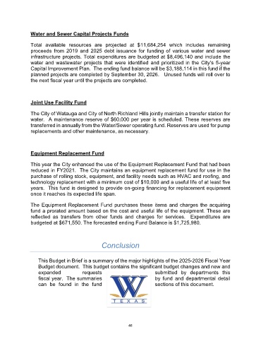 Page 46 - CITY OF WATAUGA, TEXAS ANNUAL BUDGET PORTRAIT