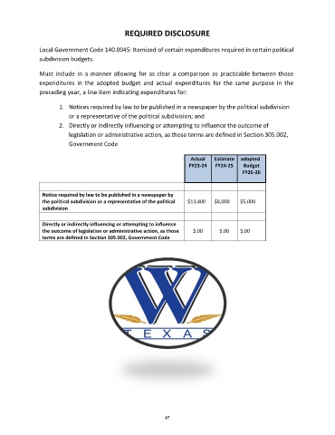 Page 47 - CITY OF WATAUGA, TEXAS ANNUAL BUDGET PORTRAIT
