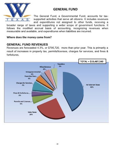 Page 49 - CITY OF WATAUGA, TEXAS ANNUAL BUDGET PORTRAIT