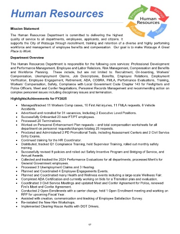 supports the City of Watauga through recruitment, training and retention of a diverse and highly performing