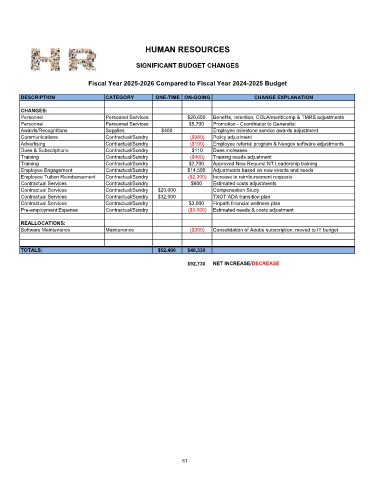 Advertising Contractual/Sundry ($100) Employee referral program & Neogov software adjustments