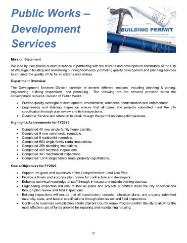 of Watauga in building and revitalizing our neighborhoods, promoting quality development and planning services