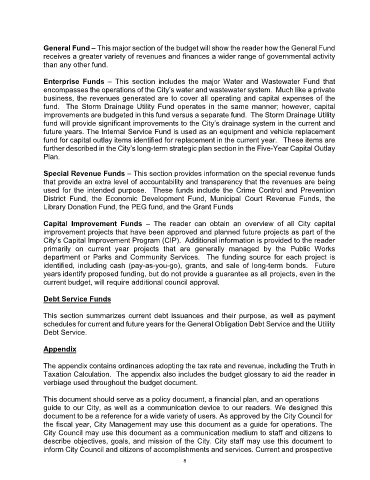 Capital Improvement Funds – The reader can obtain an overview of all City capital