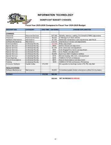 Special Services Contractual/Sundry $500 Civic Engage/Civic Send cost adjustment