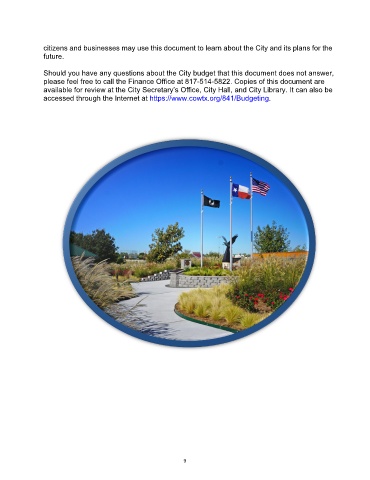 Page 9 - CITY OF WATAUGA, TEXAS ANNUAL BUDGET PORTRAIT