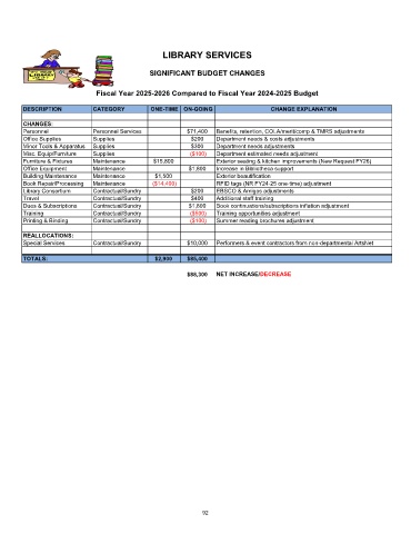DESCRIPTION CATEGORY ONE-TIME ON-GOING CHANGE EXPLANATION