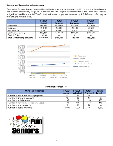 and expanded community programs. In addition, the Arts Program was reallocated to the Community Services