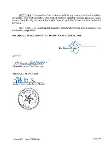Page 2 - TownofWestlakeFY26BudgetOrd1029