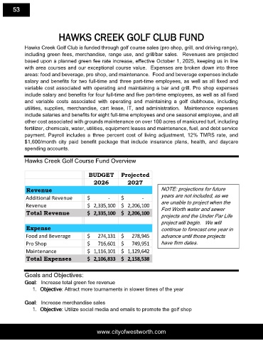 Hawks Creek Golf Club is funded through golf course sales (pro shop, grill, and driving range),